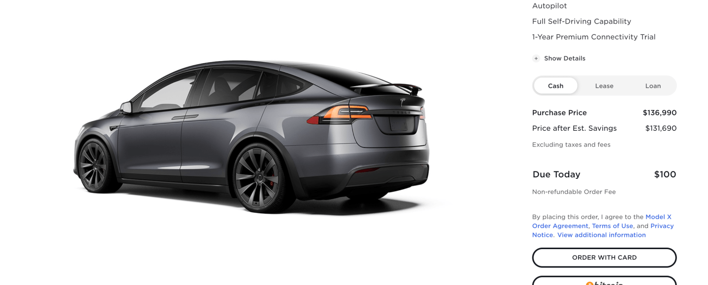 Tesla rolled out the ability for U.S. consumers to purchase their electric vehicles using Bitcoin. Along with the addition on the website, Elon Musk tweeted out the news this morning.